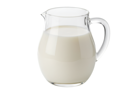 Glass Pitcher of Fresh Milk Isolated on Transparent Background