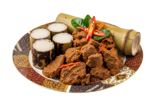 Flavorful rice with chicken and spices on transparent background
