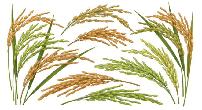 3D Render of Rice Plants, Isolated on Transparent Background, Agriculture, Harvest, Rice, Paddy, Grains