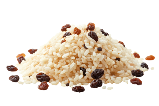 Pile of arborio rice grains creating small mound on transparent background