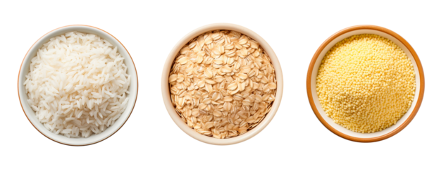 Grain of rice seed white isolated on cutout PNG. White grain sticky rice. Rice is cereal that is consumed by world's population as important food. especially in Asia. Local rice Northeast of Thailand.