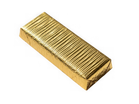 Gold foil chocolate bar isolated on transparent background