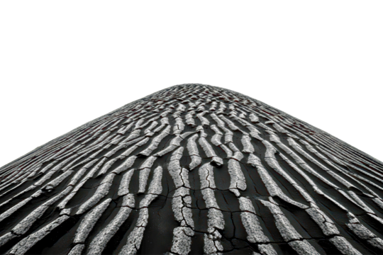Snow covered mountain peak with sharp ridges and dark shadows isolated on a transparent background