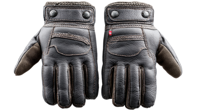 Motorcycle Gloves: rugged pair of motorcycle gloves. Crafted from supple leather and designed for both protection and comfort, ideal for motorcycle adventures.