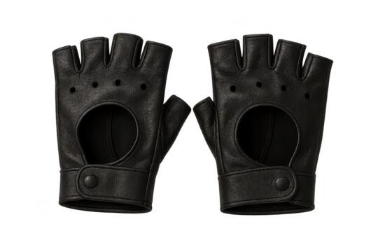 Pair of black leather fingerless gloves isolated on transparent background, stylish
