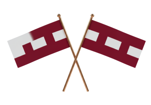Isolated patriotic Latvian flags on golden sticks for national holiday decoration