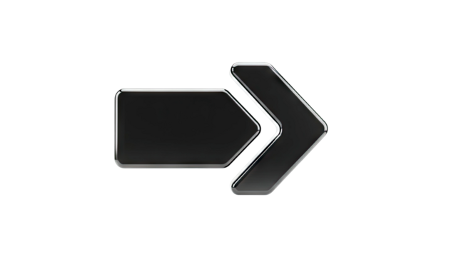 Glossy black double arrow pointing right on white background