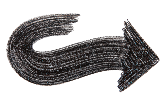 Curved Arrow Symbol Drawn With Textured Brushstroke Effect on Transparent Background