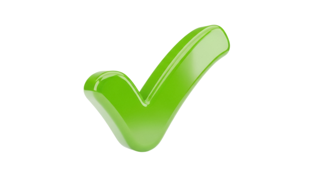 Green check mark PNG isolated on transparent background, symbol of approval and confirmation for graphic design projects