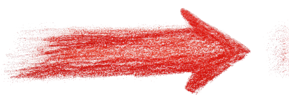 A vibrant, hand-drawn red arrow points rightward, made with a crayon-like texture on a black backdrop