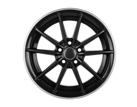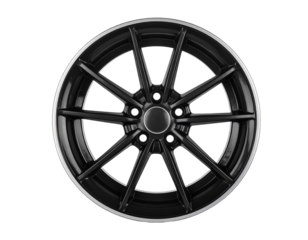 A black car wheel rim with a simple design, isolated on a white background, automotive component.