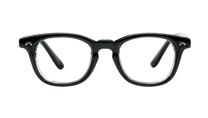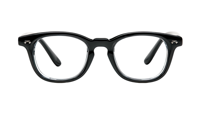 Classic black-framed eyeglasses with thick rims and a contrasting white edge