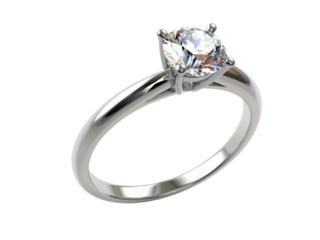 a sparkling diamond engagement ring on transparent background.