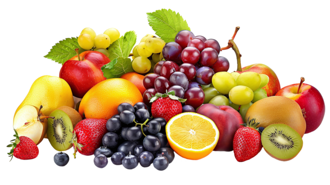 Bunch of fresh colorful fruits. On transparent background. PNG