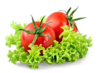 Tomato vegetables isolated on white or transparent background. Two fresh tomatoes whole and cut half.