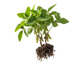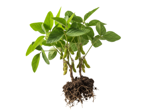 Side View of Soybean Bunch Showing Leaves and Mature Pods, Isolated