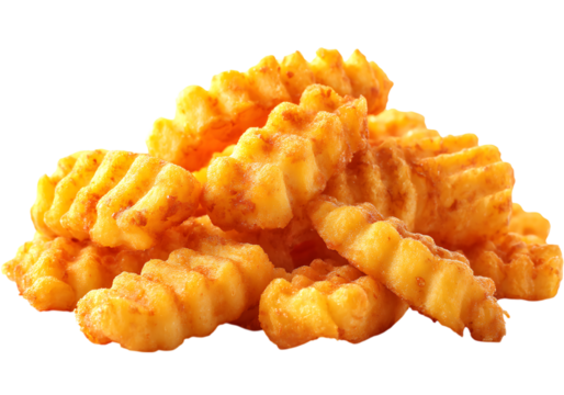 Golden crispy crinkle cut french fries delicious snack food,On Transparent Background, Isolated on white