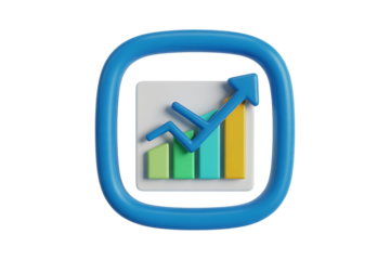 3d bar graph with upward trending arrow in turquoise and purple chart rising