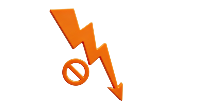 Isolated symbol of forbidden lightning strike, orange safety hazard warning electricity risk