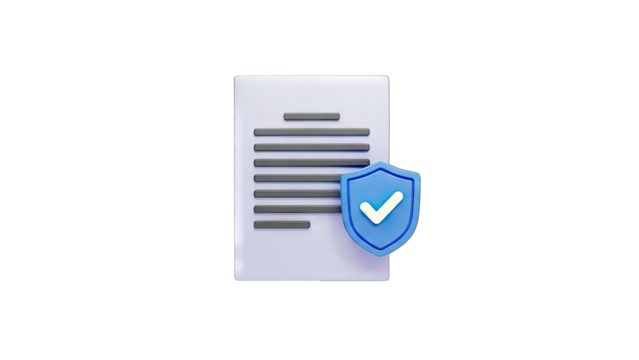 3D render showing a document in a folder with warning signs and a magnifying glass, indicating issues, errors, or security review. background removed