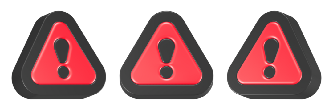 A 3D yellow triangular warning sign featuring a black exclamation mark, indicating caution or important information, on a solid transparent background. background removed