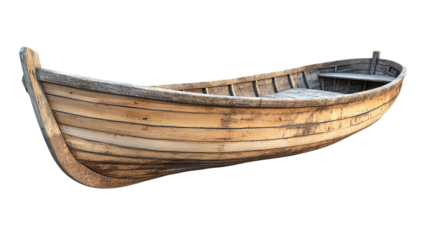 High-resolution png of a classic wooden boat isolated on transparent background for nautical-themed designs and projects.
