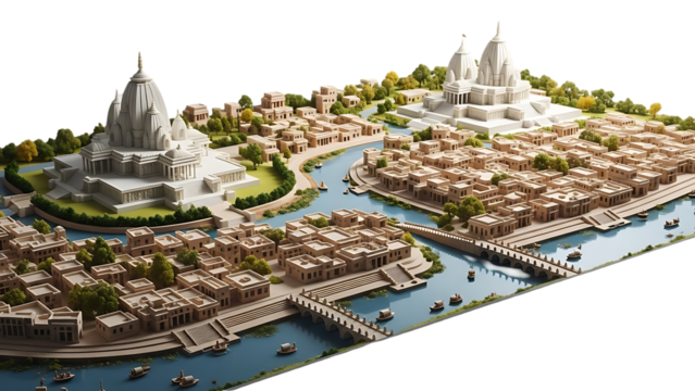 Urban Oasis by the River: An aerial shot captures a stunning waterfront scene with a network of historic buildings, a picturesque bridge stretching across, inviting for discovery.