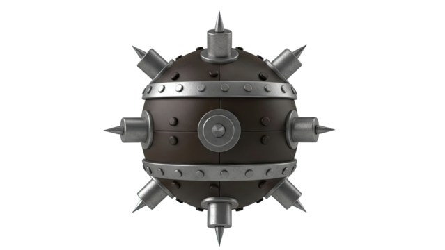 Meticulously crafted wooden shield with metal studs and rivets on transparent background