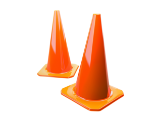 Orange traffic cone isolated, safety equipment for road construction and hazard warning on transparent background