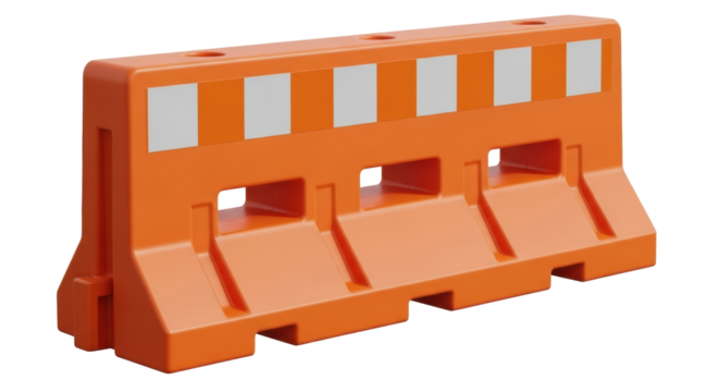 Isolated orange road construction barrier provides traffic safety and hazard warning