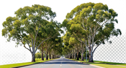 Two rows of old oak trees isolated on transparent background. 3D render.