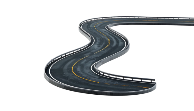 Asphalt road through the desert, isolated on a transparent background