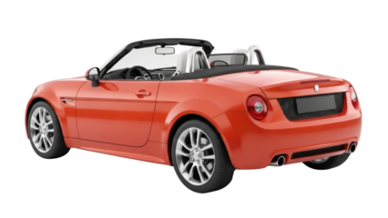Isolated red convertible roadster with no roof, seen from the rear three-quarter perspective