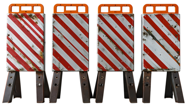 Metallic Traffic Barriers on a Transparent Background