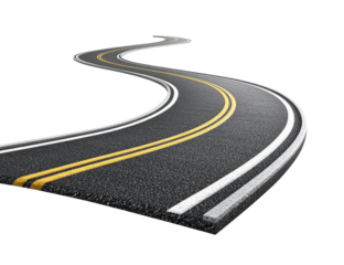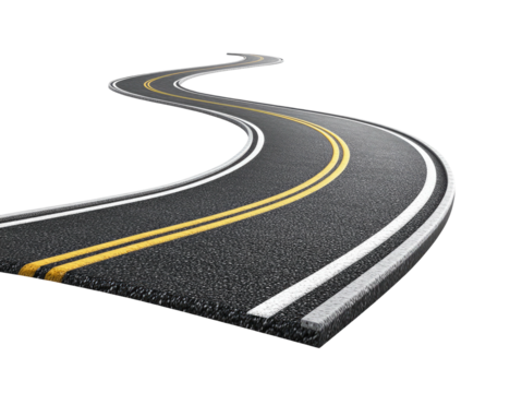 Empty Asphalt Road with Center Line Isolated on Transparent Background