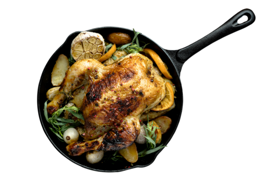 Roast chicken with rosemary on a transparent background