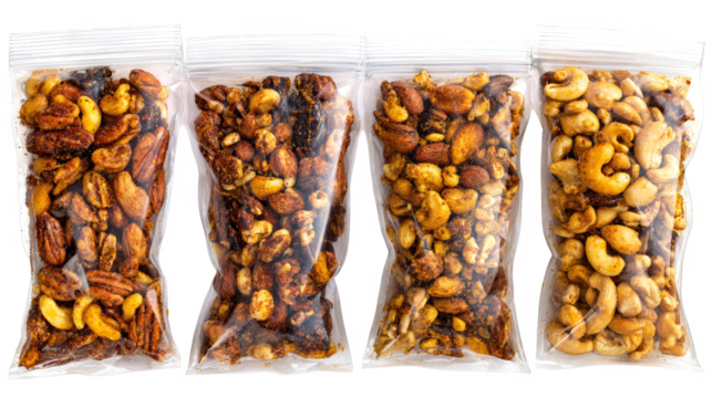 Four bags of assorted nuts, a healthy and delicious snack for every occasion four