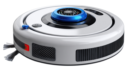 Modern robotic vacuum cleaner isolated on transparent background, a smart appliance for cleaning the house