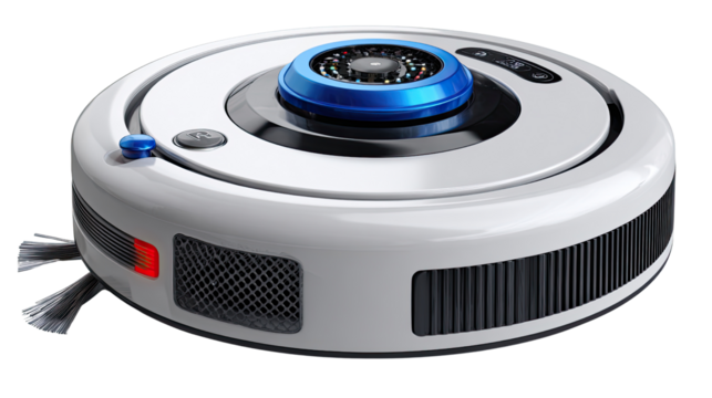 3d transparent smart robotic vacuum cleaner on clear backdrop