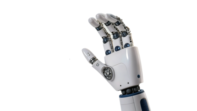 Futuristic robotic arm on transparent background highlighting technological advancements
