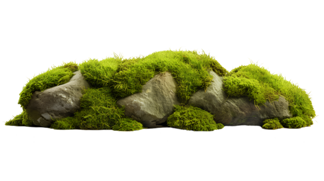 Green Moss Meadow on a rock. Side view. Isolated on Transparent background.