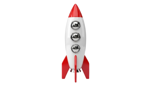 Red and white rocket toy isolated on transparent background
