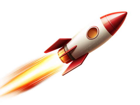 3D rocket with a sleek design and bright colors, launching upward to represent business startup and growth. isolated on a white background png