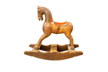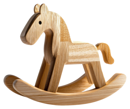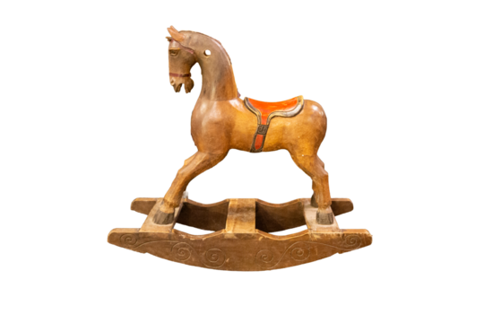 Wooden rocking horse toy, vintage childhood décor isolated on transparent background