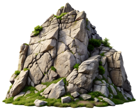 A rocky mountain with green grass isolated on transparent background