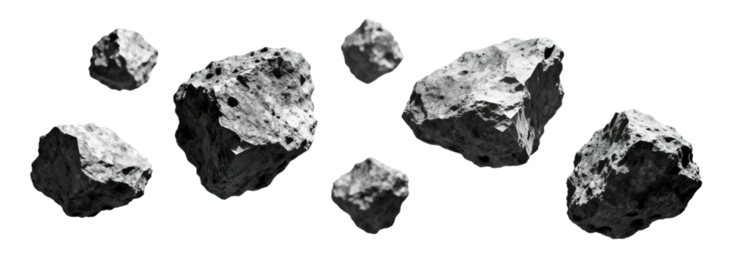 A Collection of Dark Meteorite Rocks Isolated on White