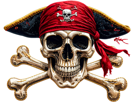 Pirate Flag with Skull and Crossbones Rippling in the Wind jolly roger piracy isolated on a transparent background