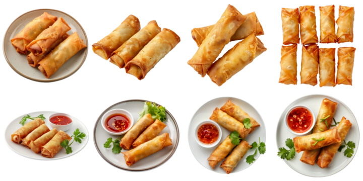 Fried spring roll transparent set collection in 3d png using for presentation.