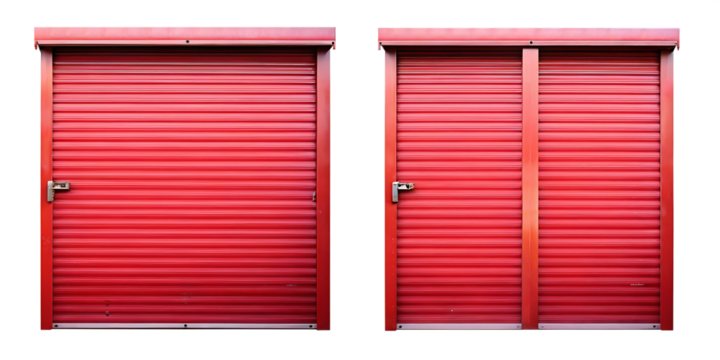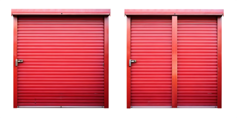 White outdoor storage container with a roll shutter door isolated with transparent background