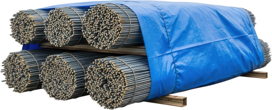 Rolled blue and gray striped picnic blanket with carrying strap isolated with transparent background